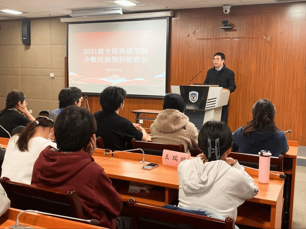 1月4日下午,伟德国际victor19462021级少数民族预科班在西校区国际大厦417教室召开期末总结班会。学院党总支书记蔡鸿,副书记、院长侯俊霞,副院长仵胜奇,副院长蒋岳春,教师代表以及全体预科生一同参加了此次班会。会议由辅导员孟媛主持。