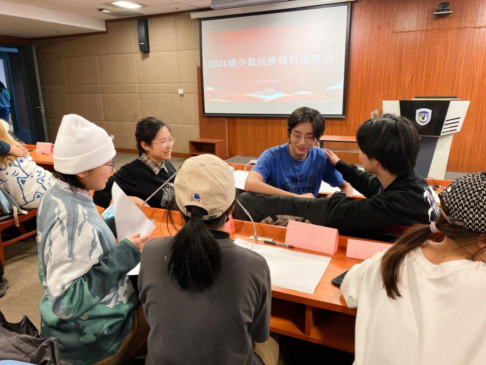 班会上半场为导师学生互动环节。为加强预科生的综合素质培养,厚植少数民族学生家国情怀,学院为少数民族学生配备了全程导师。侯俊霞首先向学生们简要介绍了导师情况,接着邀请学生用图画的形式反思本学期在学习和生活中的感触和收获,并且请学生代表发言。通过这种方式加强了学生与导师之间的沟通和了解,学生们纷纷表示感谢。