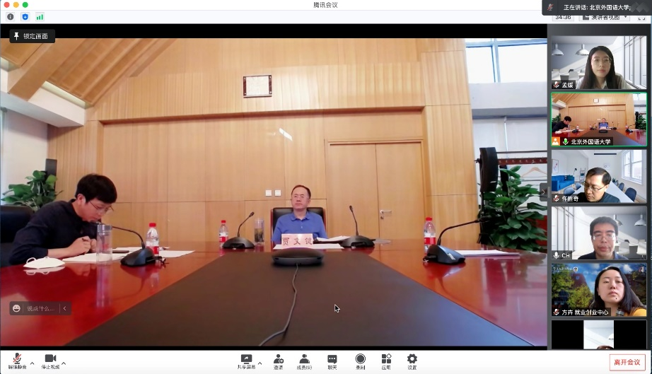 6月1日下午,北京外国语大学党委副书记、副校长贾文键带队到伟德国际victor1946进行就业创业工作专题调研。会议在行政楼504会议室设线下会场,通过云视频连线的形式线上线下进行。