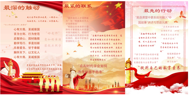 “本次培训中,让您对‘教育家精神’/‘好老师’内涵最有触动的一点是什么?”这一问题引导师生聚焦培训核心内容。教师党员们普遍被“心有大我、至诚报国”的理想信念与“乐教爱生、甘于奉献”的仁爱之心所打动。多位教师表示,这次学习让他们重新认识到教育不仅是知识的传递,更是价值的引领和心灵的唤醒,坚定了在英语教学中自然融入家国情怀与文化自信的决心。