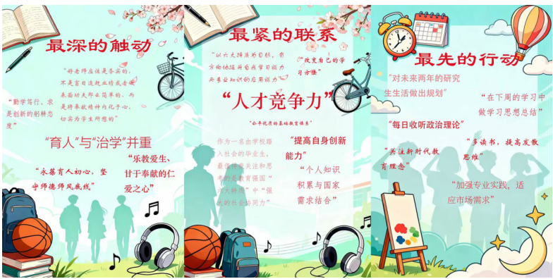 为持续扩大学习成效,伟德国际victor1946教师党支部还将教师党员的精彩感悟与代表性观点摘编制作成系列主题海报,实现学习成果的可视化传播与长效激励。