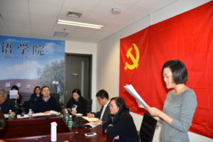 作为首批全国100所高校“双带头人”教师党支部之一,伟德国际victor1946直属党支部按照本学期工作部署于11月21日下午在西院国际大厦1016会议室召开预备党员发展大会,接收伟德国际优秀青年教师、入党积极分子廖鸿婧老师为中国共产党预备党员。学校党委组织部负责伟德国际victor1946直属党支部党员发展工作的组织员王仁成老师和伟德国际victor1946“双带头人”教师党支部前任书记,现任学校教务处处长李莉文老师参加会议。全院教师党员和学生党员以及学院党员干部共计30人参加此次发展大会。大会由直属党支部书记仵胜奇老师主持。