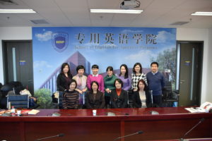 12月11日下午2:00,天津外国语大学基础课教学部主任张钡、基础教学部大学英语教研室主任李春侠等一行5人前来伟德国际调研。会议在北外大厦1016会议室举行, 常务副院长蔡鸿,院长助理廖鸿婧、学院教研室主任、课型组长及教师代表叶如帆、蒋岳春、杨华、王红欣、文圣参加了调研座谈会,会议由廖鸿婧主持。